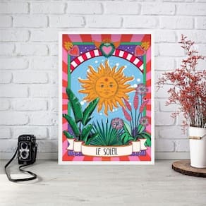 Quadro carta tarot sol - le soleil 45x34cm Cor: moldura preta Informações do produto tire todas as suas dúvidas no descritivo abaixo: decoração para quarto, sala, cozinha, escritório, área gourmet e muito mais. Chega de paredes vazias. Medidas - cada peça tem 45x34cm a3 . Material do papel - papel fotográfico brilhante de altíssima resolução acabamento - todos os quadros são acompanhados de uma película de acetato para proteção da imagem. - os quadros são embalados de forma segura com plástico bolha com camada dupla de acordo com o tamanho dos quadros. - de 3 meses. Meu quadro chegou. Como posso fixá-lo Você precisa apenas de um martelo e um prego, pois os quadros já vão acompanhados de penduradores. Esta é a forma mais indicada. Caso prefira, você pode utilizar uma fita dupla face neste caso, sugerimos de alta qualidade para evitar que descole e seu quadro caia . Como posso limpar meu quadro A limpeza é feita como um móvel comum da sua casa. Apenas um pano seco ou espanador são suficientes para tal Marca: Não Informado
