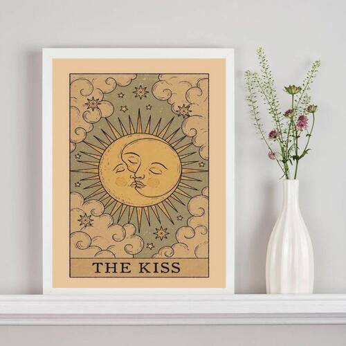 Quadro carta tarot the kiss - sol e lua 33x24cm - com vidro Moldura: madeira branca Informações do produto tire todas as suas dúvidas no descritivo abaixo: decoração para quarto, sala, cozinha, escritório, área gourmet e muito mais. Chega de paredes vazias medidas - cada peça tem 33x24cm a4 . Material do papel - papel fotográfico brilhante de altíssima resolução acabamento - todos os quadros são acompanhados de vidro para proteção da imagem. - moldura em madeira maciça na cor preta ou branca conforme produto escolhido e pendurador . - os quadros são embalados de forma segura com plástico bolha com camada dupla de acordo com o tamanho dos quadros. Garantia - garantia de 3 meses. Meu quadro chegou. Como posso fixá-lo Você precisa apenas de um martelo e um prego, pois os quadros já vão acompanhados de penduradores. Esta é a forma mais indicada. Como posso limpar meu quadro A limpeza é feita como um móvel comum da sua casa. Apenas um pano seco ou espanador são suficientes para tal Ean: 7899081930053