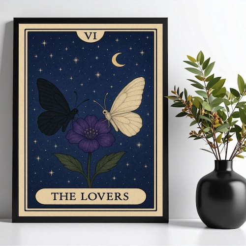 Quadro carta tarot the lovers - borboletas 24x18cm Cor: moldura preta Informações do produto tire todas as suas dúvidas no descritivo abaixo: decoração para quarto, sala, cozinha, escritório, área gourmet e muito mais. Chega de paredes vazias medidas - cada peça tem 24x18cm a5 . Material do papel - papel fotográfico brilhante de altíssima resolução acabamento - todos os quadros são acompanhados de uma película de acetato para proteção da imagem. - os quadros são embalados de forma segura com plástico bolha com camada dupla de acordo com o tamanho dos quadros. - de 3 meses. Meu quadro chegou. Como posso fixá-lo Você precisa apenas de um martelo e um prego, pois os quadros já vão acompanhados de penduradores. Esta é a forma mais indicada. Caso prefira, você pode utilizar uma fita dupla face neste caso, sugerimos de alta qualidade para evitar que descole e seu quadro caia . Como posso limpar meu quadro A limpeza é feita como um móvel comum da sua casa. Apenas um pano seco ou espanador são suficientes para tal Marca: Não Informado Ean: 7901039774906
