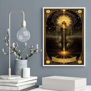 Quadro carta tarot vintage - the star 45x34cm Cor: moldura preta Informações do produto tire todas as suas dúvidas no descritivo abaixo: decoração para quarto, sala, cozinha, escritório, área gourmet e muito mais. Chega de paredes vazias. Medidas - cada peça tem 45x34cm a3 . Material do papel - papel fotográfico brilhante de altíssima resolução acabamento - todos os quadros são acompanhados de uma película de acetato para proteção da imagem. - os quadros são embalados de forma segura com plástico bolha com camada dupla de acordo com o tamanho dos quadros. Garantia - garantia de 3 meses. Meu quadro chegou. Como posso fixá-lo Você precisa apenas de um martelo e um prego, pois os quadros já vão acompanhados de penduradores. Esta é a forma mais indicada. Caso prefira, você pode utilizar uma fita dupla face neste caso, sugerimos de alta qualidade para evitar que descole e seu quadro caia . Como posso limpar meu quadro A limpeza é feita como um móvel comum da sua casa. Apenas um pano seco ou espanador são suficientes para tal
