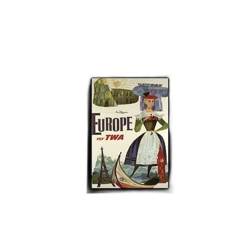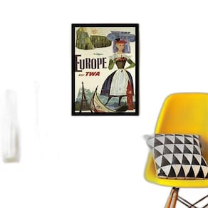 Quadro Cartaz Vintage Cia Aérea Europe 33X24Cm Moldura Preta