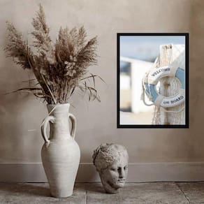 Quadro casa de praia - welcome on board 45x34cm Moldura: madeira preta Informações do produto tire todas as suas dúvidas no descritivo abaixo: decoração para quarto, sala, cozinha, escritório, área gourmet e muito mais. Chega de paredes vazias. Medidas - cada peça tem 45x34cm a3 . Material do papel - papel fotográfico brilhante de altíssima resolução acabamento - todos os quadros são acompanhados de uma película de acetato para proteção da imagem. - os quadros são embalados de forma segura com plástico bolha com camada dupla de acordo com o tamanho dos quadros. Garantia - garantia de 3 meses. Meu quadro chegou. Como posso fixá-lo Você precisa apenas de um martelo e um prego, pois os quadros já vão acompanhados de penduradores. Esta é a forma mais indicada. Caso prefira, você pode utilizar uma fita dupla face neste caso, sugerimos de alta qualidade para evitar que descole e seu quadro caia . Como posso limpar meu quadro A limpeza é feita como um móvel comum da sua casa. Apenas um pano seco ou espanador são suficientes para tal