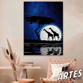 Quadro Casal De Girafas Na Noite -- Br Artes Quadro Casal de Girafas na Noite -- BR ARTES GG (150 x 100) - Qualidade Premium (padrão museu)