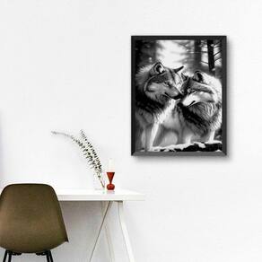Quadro casal de lobos - preto e branco 45x34cm - com vidro