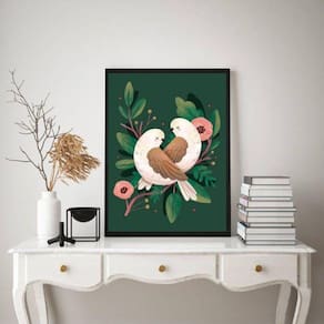 Quadro casal de passarinhos retrô vintage 24x18cm - com vidro Moldura: madeira branca Informações do produto tire todas as suas dúvidas no descritivo abaixo: decoração para quarto, sala, cozinha, escritório, área gourmet e muito mais. Chega de paredes vazias medidas - cada peça tem 24x18cm a5 . Material do papel - papel fotográfico brilhante de altíssima resolução acabamento - todos os quadros são acompanhados de vidro para proteção da imagem. - moldura em madeira maciça na cor preta e pendurador . - os quadros são embalados de forma segura com plástico bolha com camada dupla de acordo com o tamanho dos quadros. Garantia - garantia de 3 meses. Meu quadro chegou. Como posso fixá-lo Você precisa apenas de um martelo e um prego, pois os quadros já vão acompanhados de penduradores. Esta é a forma mais indicada. Como posso limpar meu quadro A limpeza é feita como um móvel comum da sua casa. Apenas um pano seco ou espanador são suficientes para tal Ean: 7893113229863