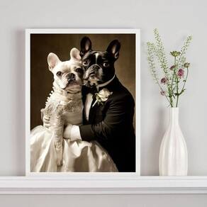 Quadro casamento bulldog francês 45x34cm Cor: moldura preta Informações do produto tire todas as suas dúvidas no descritivo abaixo: decoração para quarto, sala, cozinha, escritório, área gourmet e muito mais. Chega de paredes vazias. Medidas - cada peça tem 45x34cm a3 . Material do papel - papel fotográfico brilhante de altíssima resolução acabamento - todos os quadros são acompanhados de uma película de acetato para proteção da imagem. - os quadros são embalados de forma segura com plástico bolha com camada dupla de acordo com o tamanho dos quadros. - de 3 meses. Meu quadro chegou. Como posso fixá-lo Você precisa apenas de um martelo e um prego, pois os quadros já vão acompanhados de penduradores. Esta é a forma mais indicada. Caso prefira, você pode utilizar uma fita dupla face neste caso, sugerimos de alta qualidade para evitar que descole e seu quadro caia . Como posso limpar meu quadro A limpeza é feita como um móvel comum da sua casa. Apenas um pano seco ou espanador são suficientes para tal