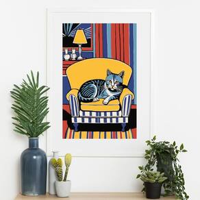 Quadro Cat Pop Art - 60x48cm - Cor: Moldura Branca