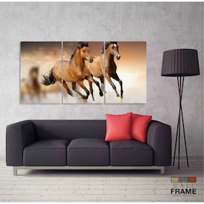 Quadro Cavalos Decorativo Paisagem Em Tecido 3 Peças