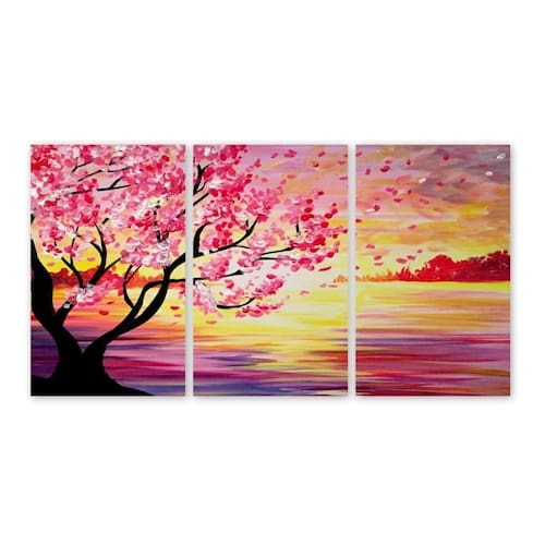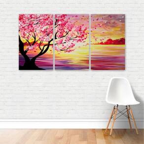 Quadro Cerejeira Pôr Do Sol Arvore Rosa Mar Flores Canvas Quadro em tela de tecido Canvas para decorar seus ambientes preferidos, tais como sala, quarto, escritório, garagem, espaço gourmet. Imagens produzidas em sistema de impressão digital de alta qualidade. Fabricação: Todo nosso processo é de fabricação própria e cuidamos cada detalhe para que seu quadro saia em perfeitas condições e que você tenha um impacto visual inesquecível. Impressão: Altíssima qualidade, sem dúvida a melhor opção para impressão em tecido canvas, realçando os detalhes, deixando suas telas com aparência natural e mantendo as cores vivas por anos Canvas: Sua experiência com esse material será inesquecível, pode achar que não conhece tecido canvas, com certeza você já deve ter visto um quadro em tela, como uma pintura ou em um museu, pois o mesmo é utilizado para as mais belas pinturas. O tecido canvas é um material 100% algodão com preparação especial com tratamento anti bacteriano e antimofo e com verniz semibrilho, apropriada para a impressão. Chassi madeira : É a estrutura de madeira eucalipto beneficiado de reflorestamento onde o tecido impresso é esticado cuidadosamente. A melhor estrutura para quadros e telas com madeira de 3 x2,3cm de espessura, chanfrada para não marcar a parte frontal de sua tela, é grampeada pelo verso dando um acabamento especial, onde suas imagens aparecem até mesmo na volta da madeira Assim seu quadro chega pronto para pendurar e não necessita de moldura Embalagem: Feita cuidadosamente envolvendo as peças com filme stretch pvc, para que diminua quase a zero as chances de marcar de alguma maneira seu quadro no transporte. O mesmo é colocado em uma caixa feita especialmente para o seu tamanho de quadro, assim seu quadro fica bem mais firme dentro da embalagem. Tamanho: Conjunto de 3 quadros conjugados com imagem em continuidade com medida total de 125x65cm, sendo: - 3 quadros de 40x65cm. Ean: 7908376101570