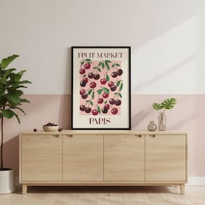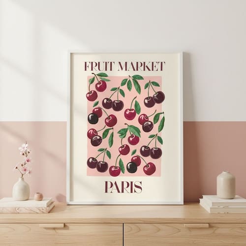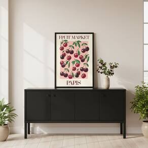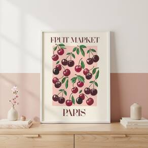 Quadro Cerejinhas Fruit Market Paris 24x18cm Mold Branca