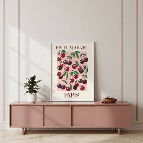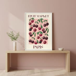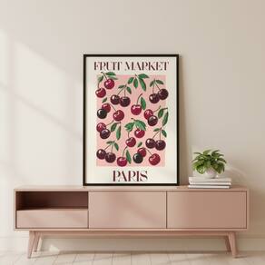 Quadro Cerejinhas Fruit Market Paris 70x50cm Mold Branca