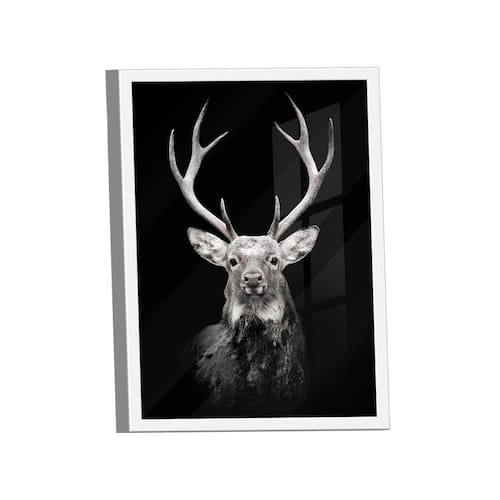 Quadro Cervo No Preto -- Br Artes Quadro Cervo no Preto -- BR ARTES Moldura Branca e Vidro - Pequeno 60x40 - - Qualidade Premium (padrão museu)