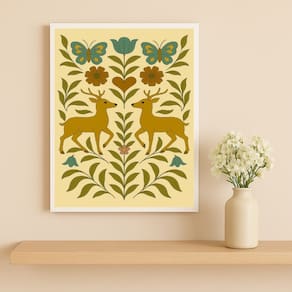 Quadro Cervos Folk Art 33x24cm Mold Branca