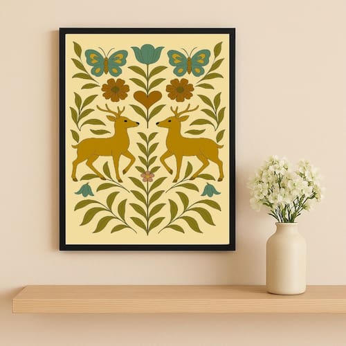 Quadro Cervos Folk Art 45x34cm Mold Branca
