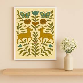 Quadro Cervos Folk Art 45x34cm Mold Preta Vidro