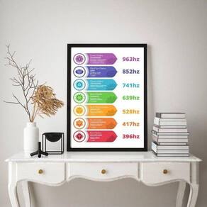 O Quadro Decorativo Chakras Frequências 24X18Cm é perfeito para decorar qualquer ambiente da sua casa ou escritório. Com moldura de madeira preta, ele traz uma bela combinação de cores e símbolos relacionados aos chakras, trazendo harmonia e equilíbrio para o ambiente.