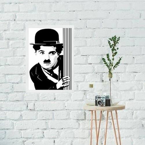Quadro Charlie Chaplin Abstrato Preto E Branco 45X34Cm
