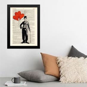 Quadro charlie chaplin balões corações 45x34cm - com vidro Moldura: madeira preta Informações do produto tire todas as suas dúvidas no descritivo abaixo: decoração para quarto, sala, cozinha, escritório, área gourmet e muito mais. Chega de paredes vazias medidas - cada peça tem 45x34cm a3 . Material do papel - papel fotográfico brilhante de altíssima resolução acabamento - todos os quadros são acompanhados de vidro para proteção da imagem. - moldura em madeira maciça na cor preta ou branca conforme produto escolhido e pendurador . - os quadros são embalados de forma segura com plástico bolha com camada dupla de acordo com o tamanho dos quadros. Garantia - garantia de 3 meses. Meu quadro chegou. Como posso fixá-lo Você precisa apenas de um martelo e um prego, pois os quadros já vão acompanhados de penduradores. Esta é a forma mais indicada. Como posso limpar meu quadro A limpeza é feita como um móvel comum da sua casa. Apenas um pano seco ou espanador são suficientes para tal