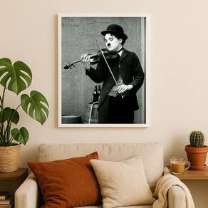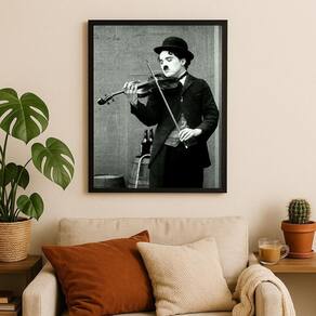 Quadro charlie chaplin tocando violino 33x24cm - com vidro Cor: moldura preta Informações do produto tire todas as suas dúvidas no descritivo abaixo: decoração para quarto, sala, cozinha, escritório, área gourmet e muito mais. Chega de paredes vazias medidas - cada peça tem 33x24cm a4 . Material do papel - papel fotográfico brilhante de altíssima resolução acabamento - todos os quadros são acompanhados de vidro para proteção da imagem. - moldura em madeira maciça na cor preta ou branca conforme produto escolhido e pendurador . - os quadros são embalados de forma segura com plástico bolha com camada dupla de acordo com o tamanho dos quadros. - de 3 meses. Meu quadro chegou. Como posso fixá-lo Você precisa apenas de um martelo e um prego, pois os quadros já vão acompanhados de penduradores. Esta é a forma mais indicada. Como posso limpar meu quadro A limpeza é feita como um móvel comum da sua casa. Apenas um pano seco ou espanador são suficientes para tal Marca: Não Informado Ean: 7901081907567