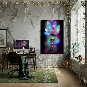 Quadro Chave Mágica Para Mundo das Fadas - 70x50cm - Cor: Moldura Branca