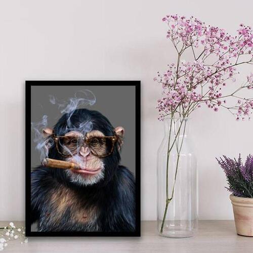 Quadro chipanzé hipster 45x34cm - com vidro Moldura: madeira preta Informações do produtoDecoração para quarto, sala, cozinha, escritório, área gourmet e muito mais. Chega de paredes vazias Medidas - cada peça tem 45x34cm a3 . Material do papel - papel fotográfico brilhante de altíssima resolução acabamento - todos os quadros são acompanhados de vidro para proteção da imagem. - moldura em madeira maciça e pendurador . - os quadros são embalados de forma segura com plástico bolha com camada dupla de acordo com o tamanho dos quadros. Garantia - garantia de 3 meses. Meu quadro chegou. Como posso fixá-lo Você precisa apenas de um martelo e um prego, pois os quadros já vão acompanhados de penduradores. Esta é a forma mais indicada. Como posso limpar meu quadro A limpeza é feita como um móvel comum da sua casa. Apenas um pano seco ou espanador são suficientes para tal
