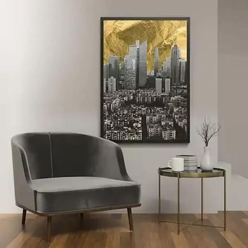 Quadro cidade cinza com céu dourado 60x40cm Moldura: madeira preta Informações do produto Decoração para quarto, sala, cozinha, escritório, área gourmet e muito mais. Chega de paredes vazias Medidas - cada peça tem 60x42cm a2 . Material do papel - papel fotográfico brilhante de altíssima resolução Acabamento - todos os quadros são acompanhados de uma película de acetato para proteção da imagem. - Os quadros são embalados de forma segura com plástico bolha com camada dupla de acordo com o tamanho dos quadros. - de 3 meses. Meu quadro chegou. Como posso fixá-lo Você precisa apenas de um martelo e um prego, pois os quadros já vão acompanhados de penduradores. Esta é a forma mais indicada. Caso prefira, você pode utilizar uma fita dupla face neste caso, sugerimos de alta qualidade para evitar que descole e seu quadro caia . Como posso limpar meu quadro A limpeza é feita como um móvel comum da sua casa. Apenas um pano seco ou espanador são suficientes para tal