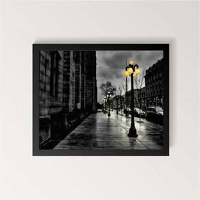 Quadro Cidade Com Poste Iluminado 45X34Cm Moldura Preta
