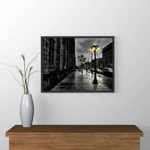 Quadro cidade com poste iluminado 45x34cm