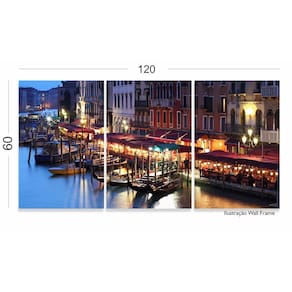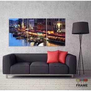 Quadro Cidade Veneza Paisagem Noturna Para Sala 120x60 3 peç