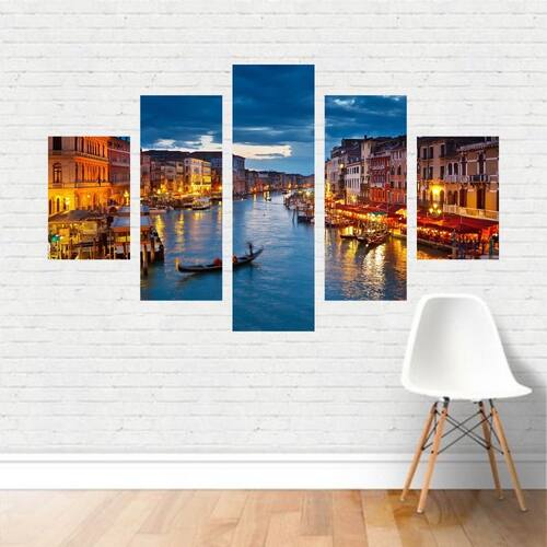 Quadro Cidades Canal de Veneza Noite em Tela Canvas