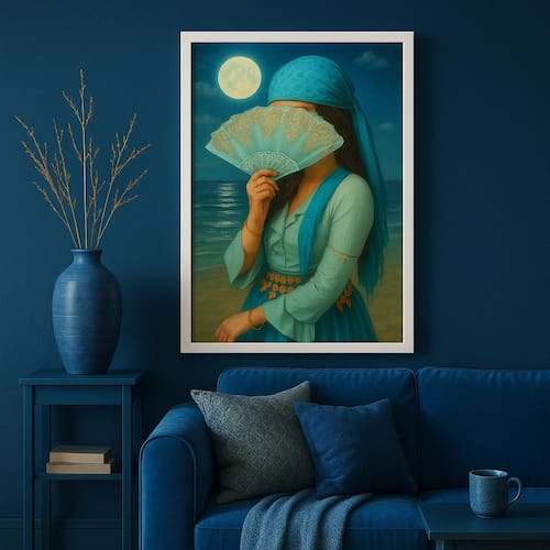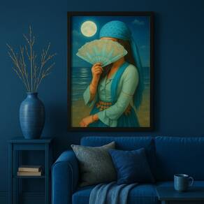 Quadro Cigana Da Praia - Azul 33x24cm - com vidro - Cor: Moldura preta