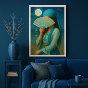 Quadro Cigana Da Praia - Azul 33x24cm - Cor: Moldura preta