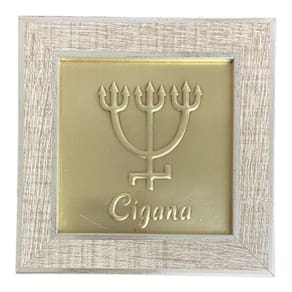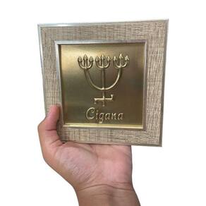 Quadro Cigana Dourada Madeira Carvalho e Metal 13 x13 cm Quadro Cigana Dourada Madeira Carvalho e Metal 13 x13 cm
