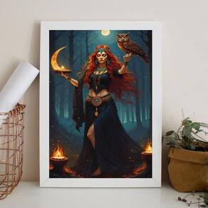 Quadro Cigana Ritual Da Lua - Coruja 24X18Cm - Com Vidro