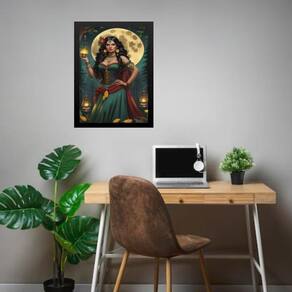 Quadro cigana sarita - lua cheia 45x34cm - com vidro Cor: moldura branca Informações do produto tire todas as suas dúvidas no descritivo abaixo: decoração para quarto, sala, cozinha, escritório, área gourmet e muito mais. Chega de paredes vazias medidas - cada peça tem 45x34cm a3 . Material do papel - papel fotográfico brilhante de altíssima resolução acabamento - todos os quadros são acompanhados de vidro para proteção da imagem. - moldura em madeira maciça na cor preta ou branca conforme produto escolhido e pendurador . - os quadros são embalados de forma segura com plástico bolha com camada dupla de acordo com o tamanho dos quadros. Garantia - garantia de 3 meses. Meu quadro chegou. Como posso fixá-lo Você precisa apenas de um martelo e um prego, pois os quadros já vão acompanhados de penduradores. Esta é a forma mais indicada. Como posso limpar meu quadro A limpeza é feita como um móvel comum da sua casa. Apenas um pano seco ou espanador são suficientes para tal