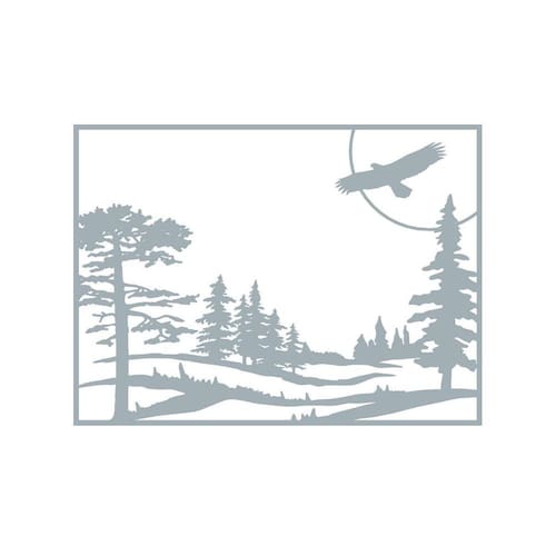 Quadro Cinza Branco Mdf Paisagem Noturna Aguia 40X20Cm