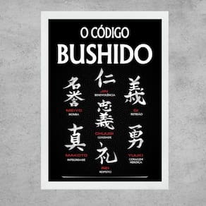 Quadro código bushido - 7 virtudes samurai 33x24cm - com vidro Cor: moldura branca Informações do produto tire todas as suas dúvidas no descritivo abaixo: decoração para quarto, sala, cozinha, escritório, área gourmet e muito mais. Chega de paredes vazias medidas - cada peça tem 33x24cm a4 . Material do papel - papel fotográfico brilhante de altíssima resolução acabamento - todos os quadros são acompanhados de vidro para proteção da imagem. - moldura em madeira maciça na cor preta ou branca conforme produto escolhido e pendurador . - os quadros são embalados de forma segura com plástico bolha com camada dupla de acordo com o tamanho dos quadros. Garantia - garantia de 3 meses. Meu quadro chegou. Como posso fixá-lo Você precisa apenas de um martelo e um prego, pois os quadros já vão acompanhados de penduradores. Esta é a forma mais indicada. Como posso limpar meu quadro A limpeza é feita como um móvel comum da sua casa. Apenas um pano seco ou espanador são suficientes para tal