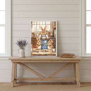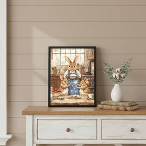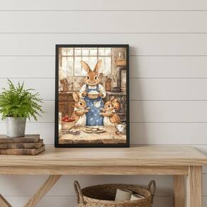 Quadro Coelhinhos Na Cozinha 24x18cm Mold Branca