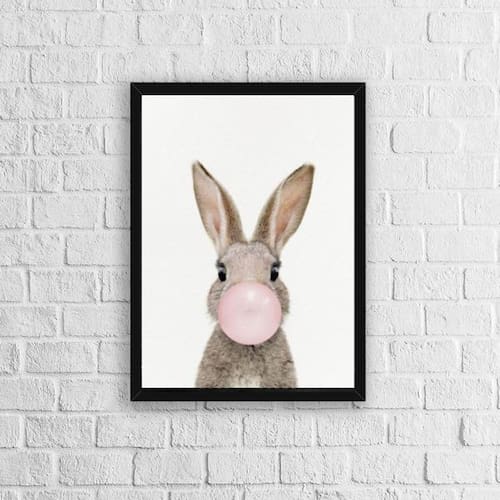 Quadro coelho chicletes 24x18cm Moldura: madeira preta Informações do produto tire todas as suas dúvidas no descritivo abaixo: decoração para quarto, sala, cozinha, escritório, área gourmet e muito mais. Chega de paredes vazias medidas - cada peça tem 24x18cm a5 . Material do papel - papel fotográfico brilhante de altíssima resolução acabamento - todos os quadros são acompanhados de uma película de acetato para proteção da imagem. - moldura em madeira maciça na cor branca e pendurador móvel que pode ser retirado facilmente caso deseje fixar com fita dupla face. - os quadros são embalados de forma segura com plástico bolha com camada dupla de acordo com o tamanho dos quadros. Garantia - garantia de 3 meses prazo de envio pedimos 24 horas úteis no máximo para enviar seu pedido após o envio, segue os prazos normais dos correios, cerca de 7 dias úteis exceto para norte e nordeste, que pode ser de até 14 dias úteis. Em diversas cidades, este prazo normalmente é reduzido, mas depende do prazo dos correios. Meu quadro chegou. Como posso fixá-lo Você precisa apenas de um martelo e um prego, pois os quadros já vão acompanhados de penduradores. Esta é a forma mais indicada. Caso prefira, você pode utilizar uma fita dupla face neste caso, sugerimos de alta qualidade para evitar que descole e seu quadro caia . Como posso limpar meu quadro A limpeza é feita como um móvel comum da sua casa. Apenas um pano seco ou espanador são suficientes para tal