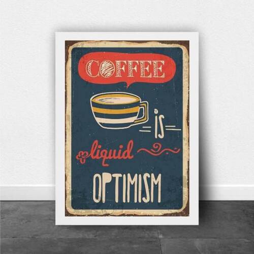 Quadro Coffee Is Liquid Optimism 24X18Cm Moldura Branca Moldura: madeira branca Informações do produto: Tire todas as suas dúvidas no descritivo abaixo: Medidas - cada peça tem 24x18cm a5 . Material do papel - papel fotográfico brilhante de altíssima resolução. Acabamento - todos os quadros são acompanhados de uma película de acetato para proteção da imagem. Moldura em madeira maciça na cor branca e dependurador móvel que pode ser retirado facilmente caso deseje fixar com fita dupla face. Os quadros são embalados de forma segura com plástico bolha com camada dupla de acordo com o tamanho dos quadros. - de 3 meses Como posso fixá-lo Você precisa apenas de um martelo e um prego, pois os quadros já vão acompanhados de dependuradores. Esta é a forma mais indicada. Caso prefira, você pode utilizar uma fita dupla face neste caso, sugerimos de alta qualidade para evitar que descole e seu quadro caia . Como posso limpar meu quadro A limpeza é feita como um móvel comum da sua casa. Apenas um pano seco ou espanador são suficientes para tal.