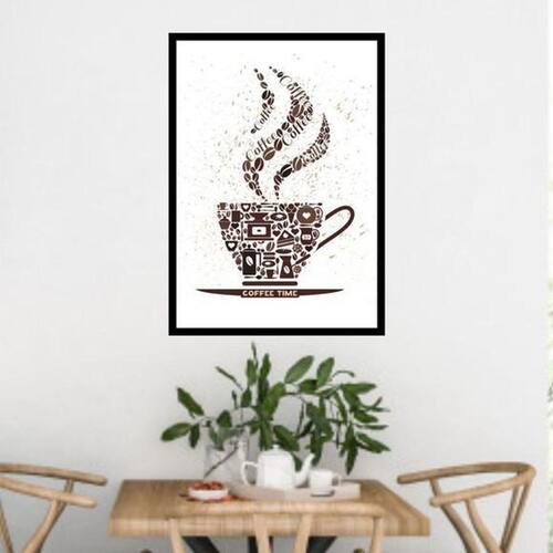 Quadro Coffee Time - Marrom E Branco Moldura Preta 24X18Cm
