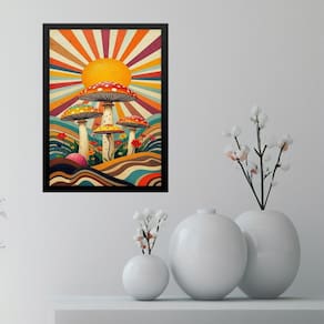 Quadro Cogumelos - Boho Hippy Mushroom Sunrise 45X34Cm