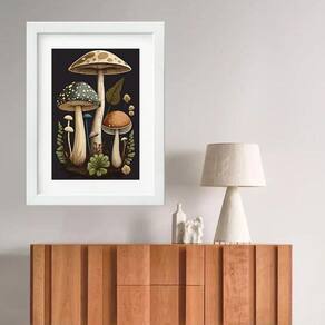 Quadro cogumelos vintage - 60x48cm Moldura: madeira preta Informações do produto tire todas as suas dúvidas no descritivo abaixo: decoração para quarto, sala, cozinha, escritório, área gourmet e muito mais. Chega de paredes vazias medidas - cada peça tem 60x48cm . Material do papel - papel fotográfico brilhante de altíssima resolução acabamento - todos os quadros são acompanhados de vidro para proteção da imagem. - moldura em madeira maciça na cor preta ou branca conforme produto escolhido e pendurador. - paspatur branco com 7cm de largura - os quadros são embalados de forma segura com plástico bolha com camada dupla de acordo com o tamanho dos quadros. Garantia - garantia de 3 meses. Meu quadro chegou. Como posso fixá-lo Você precisa apenas de um martelo e um prego, pois os quadros já vão acompanhados de penduradores. Esta é a forma mais indicada. Como posso limpar meu quadro A limpeza é feita como um móvel comum da sua casa. Apenas um pano seco ou espanador são suficientes para tal