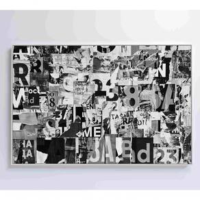 Quadro Colagem De Letras Em Preto E Branco Medidas 90x60 Cm Impressão Vidro Acrílico