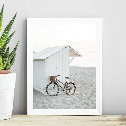 Quadro coleção praia soft - bicicleta 33x24cm - com vidro Moldura: madeira branca Informações do produto tire todas as suas dúvidas no descritivo abaixo: decoração para quarto, sala, cozinha, escritório, área gourmet e muito mais. Chega de paredes vazias medidas - cada peça tem 33x24cm a4 . Material do papel - papel fotográfico brilhante de altíssima resolução acabamento - todos os quadros são acompanhados de vidro para proteção da imagem. - moldura em madeira maciça na cor preta ou branca conforme produto escolhido e pendurador . - os quadros são embalados de forma segura com plástico bolha com camada dupla de acordo com o tamanho dos quadros. Garantia - garantia de 3 meses. Meu quadro chegou. Como posso fixá-lo Você precisa apenas de um martelo e um prego, pois os quadros já vão acompanhados de penduradores. Esta é a forma mais indicada. Como posso limpar meu quadro A limpeza é feita como um móvel comum da sua casa. Apenas um pano seco ou espanador são suficientes para tal