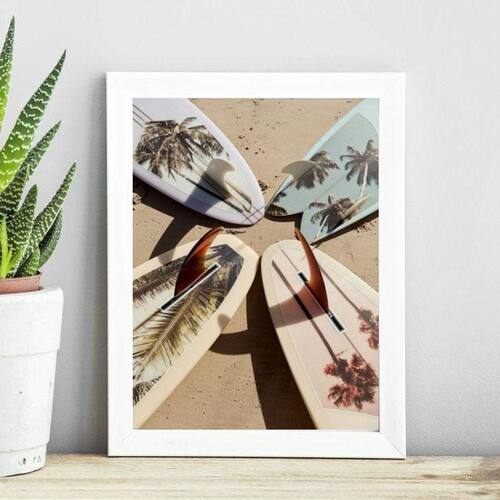 Quadro coleção praia surf - pranchas 24x18cm - com vidro Moldura: madeira preta Informações do produto tire todas as suas dúvidas no descritivo abaixo: decoração para quarto, sala, cozinha, escritório, área gourmet e muito mais. Chega de paredes vazias medidas - cada peça tem 24x18cm a5 . Material do papel - papel fotográfico brilhante de altíssima resolução acabamento - todos os quadros são acompanhados de vidro para proteção da imagem. - moldura em madeira maciça na cor preta ou branca conforme produto escolhido e pendurador . - os quadros são embalados de forma segura com plástico bolha com camada dupla de acordo com o tamanho dos quadros. Garantia - garantia de 3 meses. Meu quadro chegou. Como posso fixá-lo Você precisa apenas de um martelo e um prego, pois os quadros já vão acompanhados de penduradores. Esta é a forma mais indicada. Como posso limpar meu quadro A limpeza é feita como um móvel comum da sua casa. Apenas um pano seco ou espanador são suficientes para tal