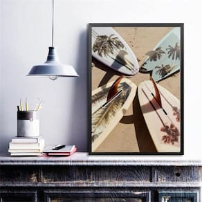 Quadro coleção praia surf - pranchas 45x34cm Moldura: madeira branca Informações do produto tire todas as suas dúvidas no descritivo abaixo: decoração para quarto, sala, cozinha, escritório, área gourmet e muito mais. Chega de paredes vazias. Medidas - cada peça tem 45x34cm a3 . Material do papel - papel fotográfico brilhante de altíssima resolução acabamento - todos os quadros são acompanhados de uma película de acetato para proteção da imagem. - os quadros são embalados de forma segura com plástico bolha com camada dupla de acordo com o tamanho dos quadros. - de 3 meses. Meu quadro chegou. Como posso fixá-lo Você precisa apenas de um martelo e um prego, pois os quadros já vão acompanhados de penduradores. Esta é a forma mais indicada. Caso prefira, você pode utilizar uma fita dupla face neste caso, sugerimos de alta qualidade para evitar que descole e seu quadro caia . Como posso limpar meu quadro A limpeza é feita como um móvel comum da sua casa. Apenas um pano seco ou espanador são suficientes para tal Marca: Não Informado