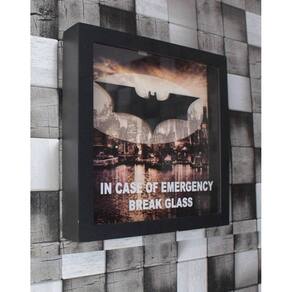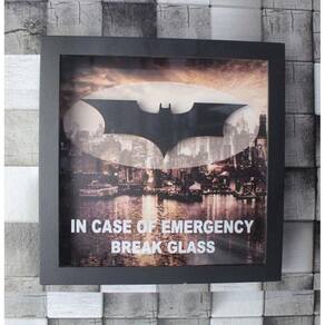 Quadro Colecionável Acrílico Decorativo Parede Geek Batman Quadro Decorativo Em Caso De emergência Quebre O Vidro Com uma arte que fará toda a diferença na hora de presentear quem você gosta, feito em MDF e PVC, sem duvida um excelente presente. Não perca essa oportunidade de levar para casa esse lindo produto