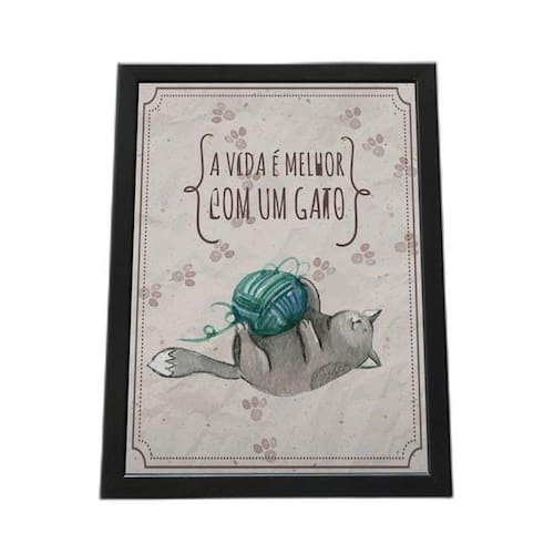 Quadro Com Moldura A Vida É Melhor Com Gato