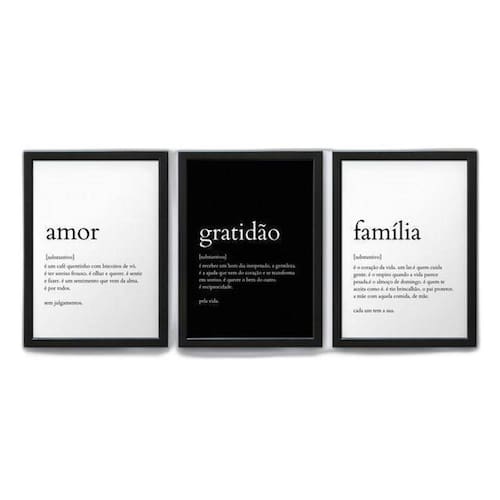 Contém: 3 quadros com tamanho de 30x20cm cada Com moldura preta, feita com madeira de reflorestamento. Sem vidro Marca: Quadros Tac Ean: 7896907629955